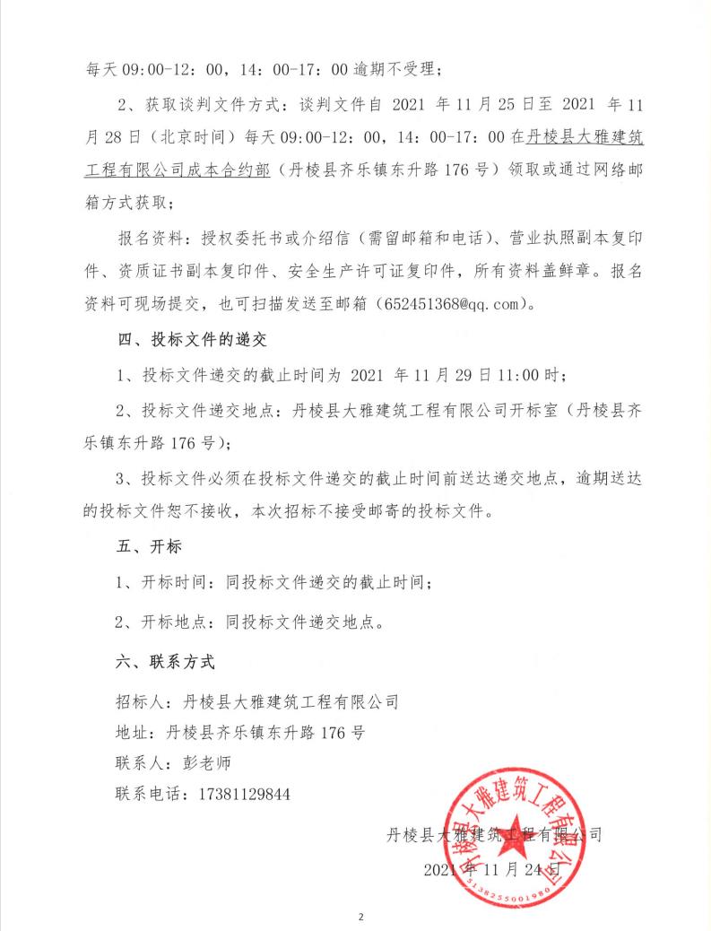 【大雅建筑公司】丹棱縣城市公園慢性系統(tǒng)連接項(xiàng)目(四標(biāo)段)專業(yè)分包競(jìng)爭(zhēng)性談判公告
