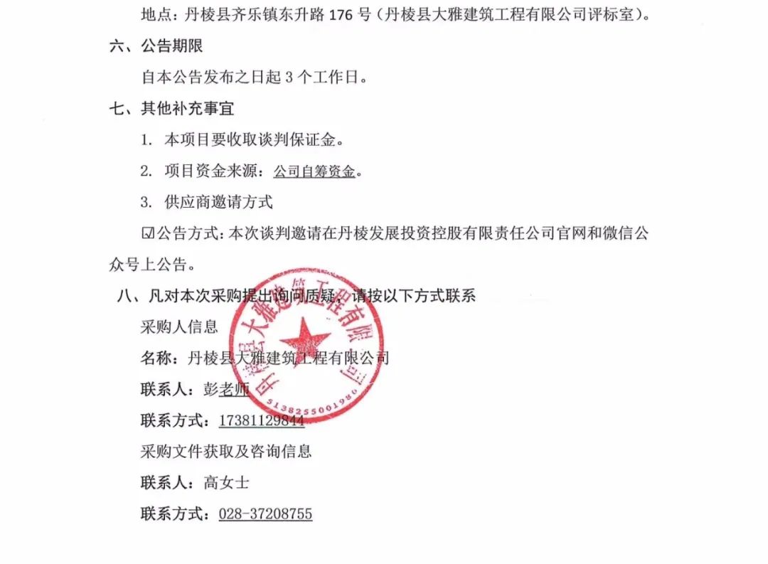 丹棱縣熊河碥片區(qū)市政基礎設施建設一期(城市雙修)設計施工總承包(EPC)聲光、亮化工程專業(yè)分包項目談判邀請公告