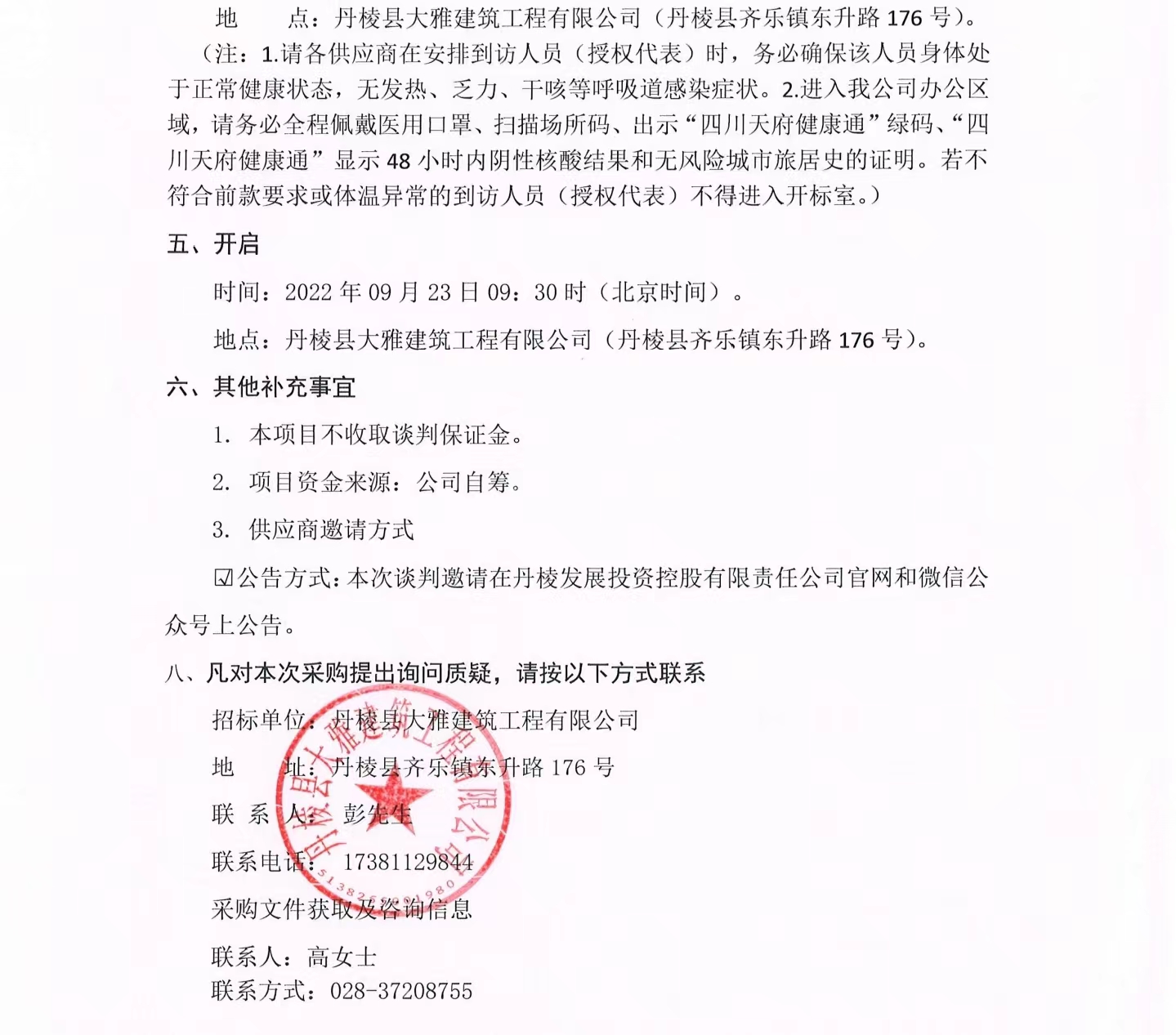 丹棱縣全域農(nóng)旅融合仁美鎮(zhèn)生態(tài)濕地公園(社區(qū)公園)、廣場及配套旅游設(shè)施建設(shè)項(xiàng)目稻田餐廳工程幕墻專業(yè)分包項(xiàng)目談判邀請(qǐng)公告