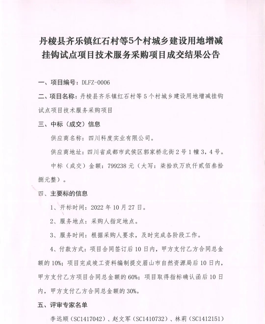 丹棱縣齊樂鎮(zhèn)紅石村等5個村城鄉(xiāng)建設(shè)用地增減掛鉤試點項目技術(shù)服務(wù)采購項目成交結(jié)果公告
