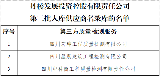 附件:丹棱發(fā)展投資控股有限責(zé)任公司第二批入庫供應(yīng)商名單