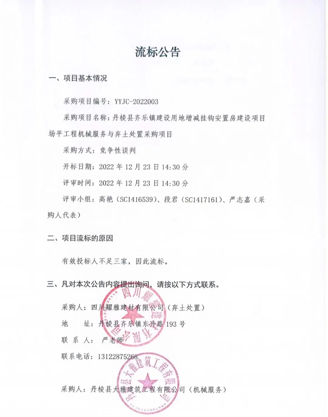 丹棱縣齊樂(lè)鎮(zhèn)建設(shè)用地增減掛鉤安置房建設(shè)項(xiàng)目場(chǎng)平工程機(jī)械服務(wù)與棄土處置采購(gòu)項(xiàng)目流標(biāo)公告