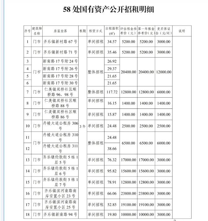 丹棱縣58處國(guó)有資產(chǎn)3年租賃權(quán)拍賣(mài)公告