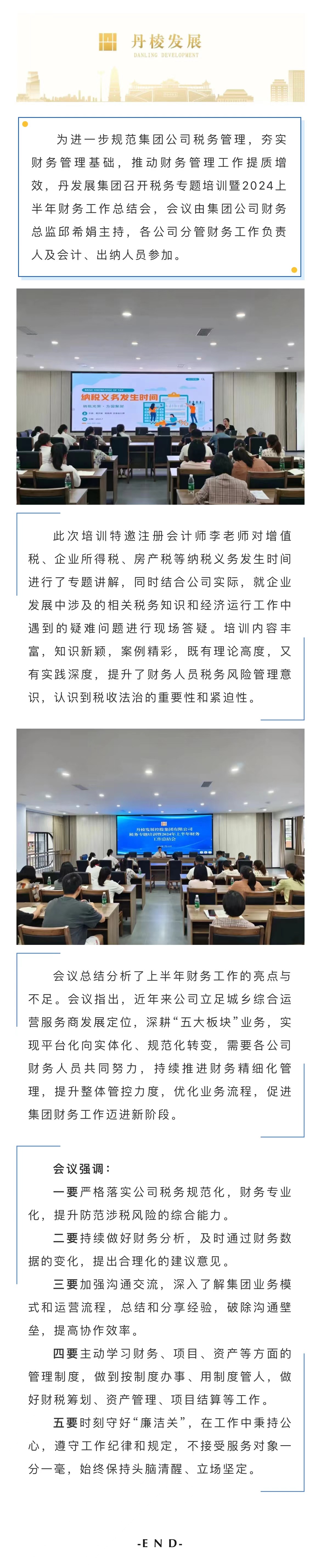 審慎嚴(yán)謹(jǐn) 聚力同行——丹發(fā)展集團公司召開稅務(wù)專題培訓(xùn)暨2024上半年財務(wù)工作總結(jié)會