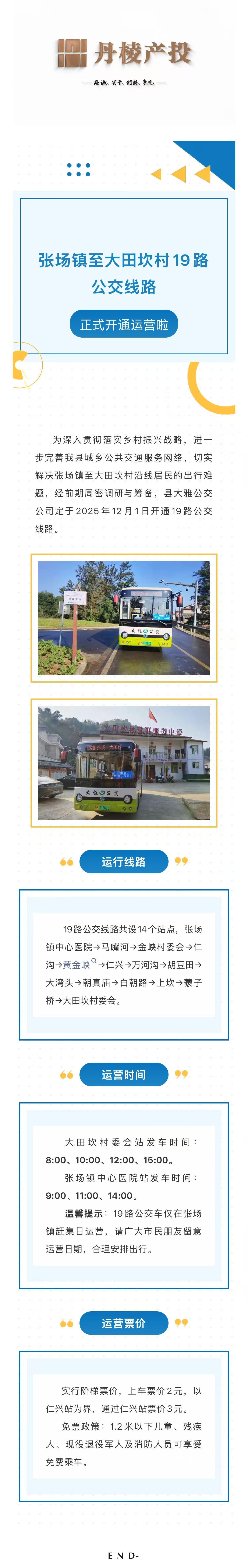張場鎮(zhèn)至大田坎村19路公交線路正式開通運營啦!