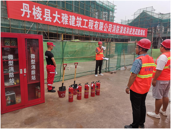 為進一步提高丹棱縣大雅建筑工程有限公司(以下簡稱“縣大雅建筑公司”)全體工作人員消防安全意識和應(yīng)急處置能力,6月24日,我司在仁美鎮(zhèn)雙橋社區(qū)農(nóng)副產(chǎn)品交易中心項目(以下簡稱“雙橋項目”)施工現(xiàn)場組織開展了一場消防應(yīng)急演練,此次演練邀請到丹棱發(fā)展投資控股有限責(zé)任公司相關(guān)領(lǐng)導(dǎo)和部室人員觀摩指導(dǎo)。