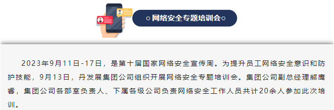 【網(wǎng)絡(luò)安全宣傳周】 丹發(fā)展集團(tuán)公司開展網(wǎng)絡(luò)安全專題培訓(xùn)會(huì)