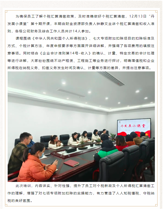個(gè)稅匯算清繳培訓(xùn)——“丹發(fā)展小課堂”第十期開講啦!